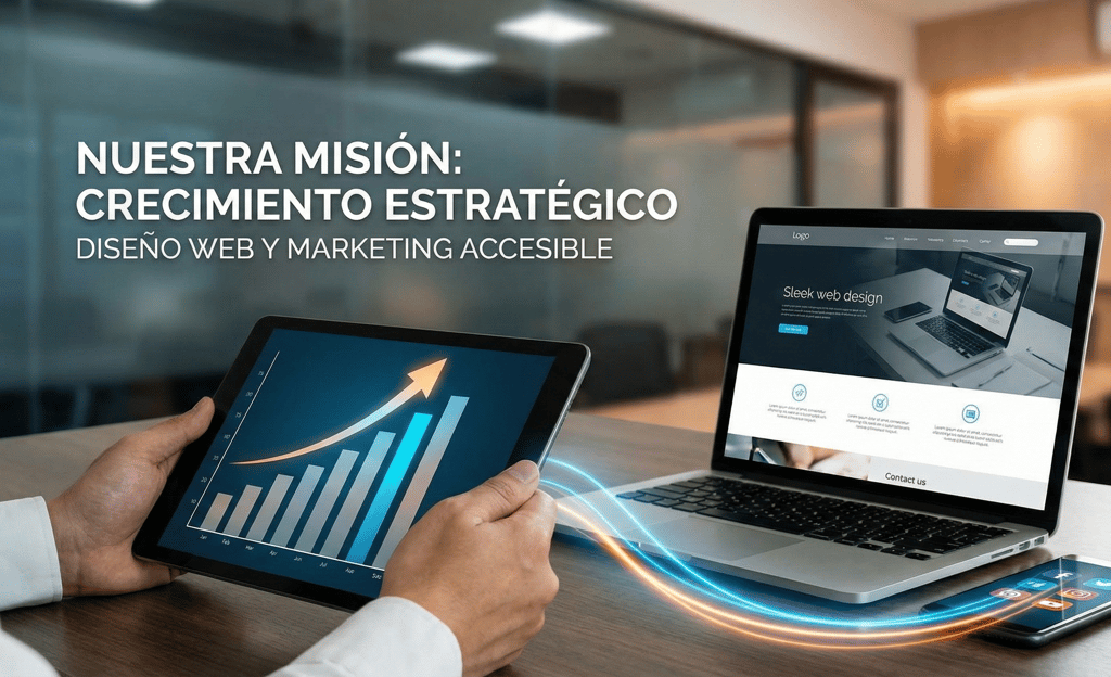Nuestra misión es impulsar el crecimiento comercial de las empresas mediante soluciones digitales estratégicas, ofreciendo servicios de diseño web y marketing accesibles, profesionales y de vanguardia. Nos comprometemos a brindar a cada cliente una presencia online sólida que refleje la calidad de sus servicios y los posicione como líderes en su sector.